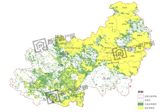 根据地形、高程、坡度等分析,普宁全域地势呈现西南部以山地丘陵为主,东北部和中部以平原为主。从种植地理分布情况来看,普宁东北部和中部平原地区适合种植水稻、豆类等主要粮食和蔬菜、花卉、果蔗等平原低缓坡度作物,西部和东南部丘陵地区适合种植玉米、红薯等粮食作物及水果、茶叶、中草药等丘陵作物。