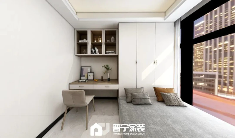 户型改动:各空间的柜体设计,增大收纳空间。