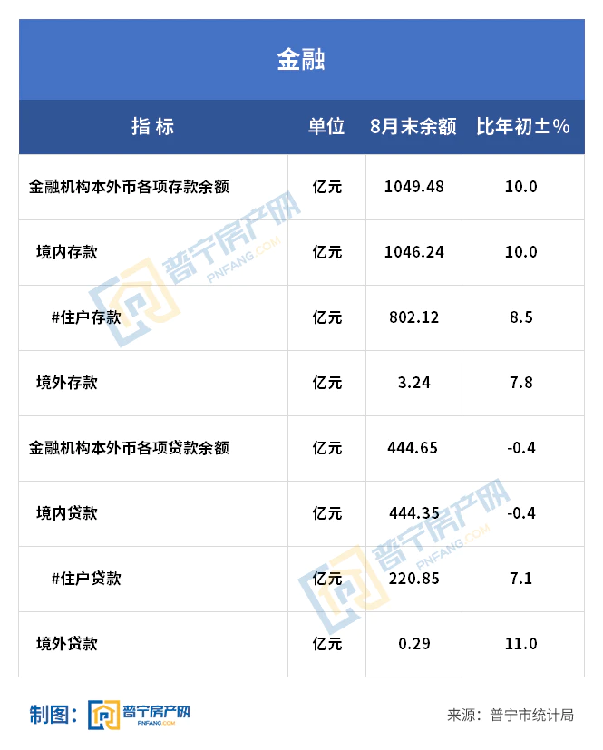全市金融机构本外币各项存款余额1049.48亿元,比年初增长10.0%;金融机构本外币各项贷款余额444.65亿元,比年初下降0.4%。存贷比42.4%。