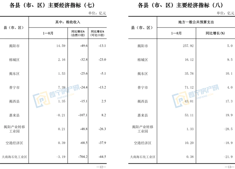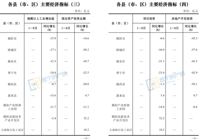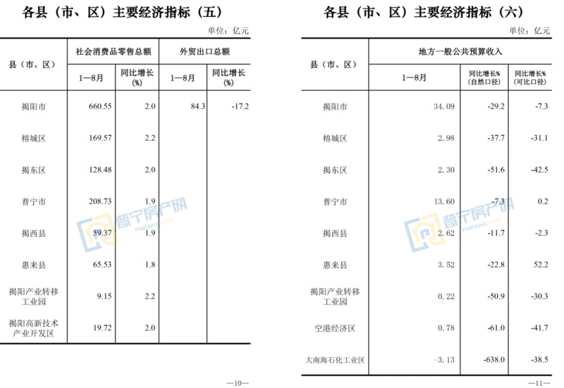 附:揭阳各县区主要经济指标
