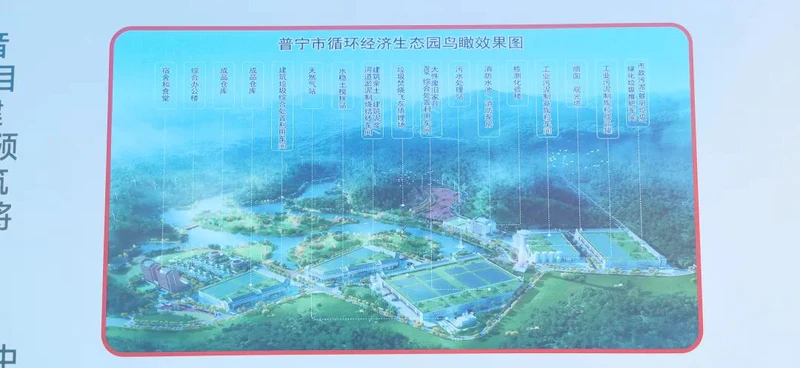 其中普宁市循环经济生态园,项目总投资20亿元,占地面积503亩,由金茂(普宁)生态科技有限公司投资、建设和运营管理,引进高端垃圾处理设备,主要处理建筑垃圾、市政污泥、河道淤泥、餐厨垃圾等六大类固体废弃物,项目建成后将在环境基础设施建设和资源循环化利用方面发挥示范作用,助力我市生态文明建设。