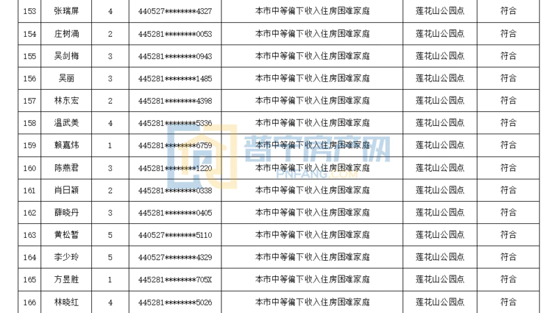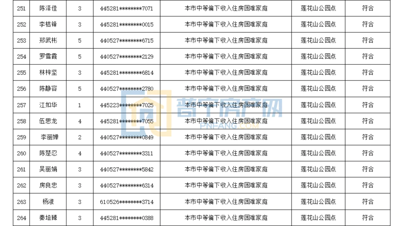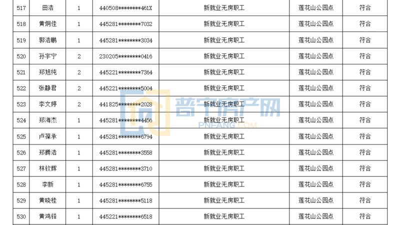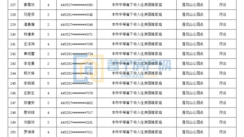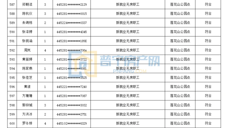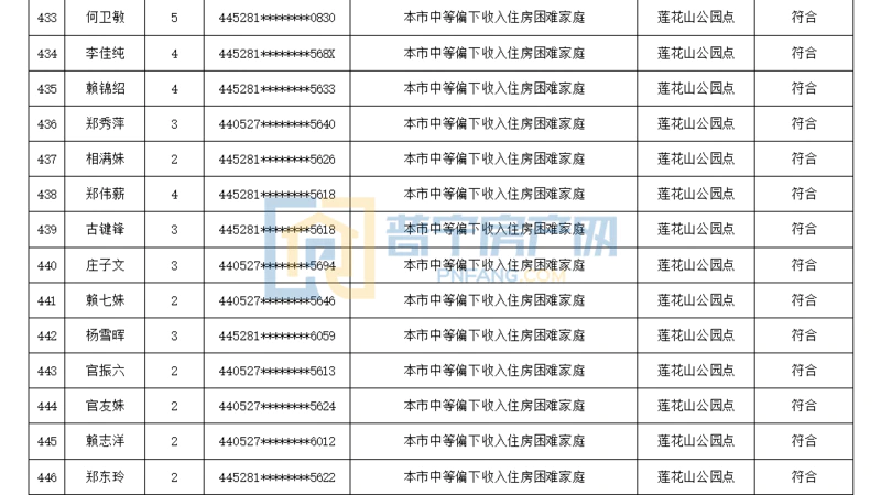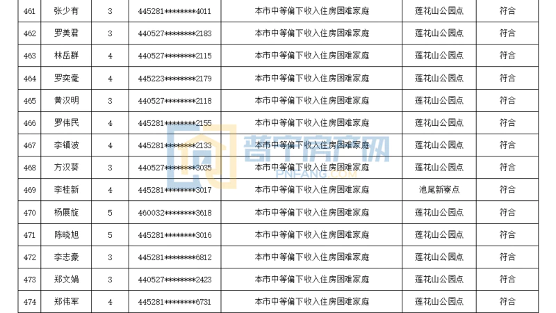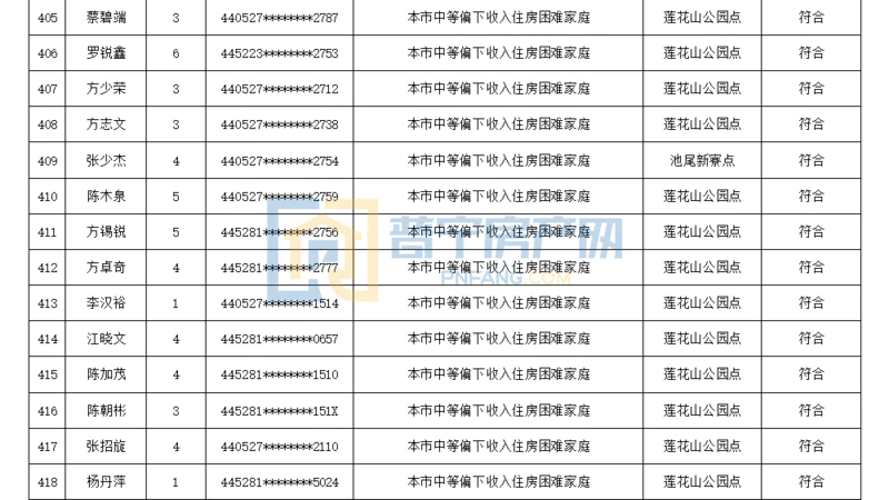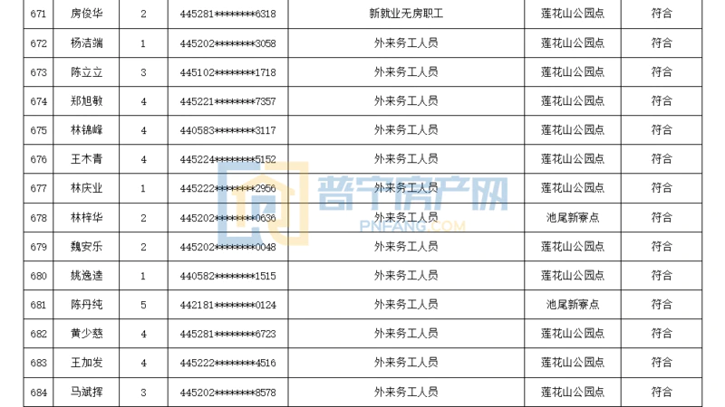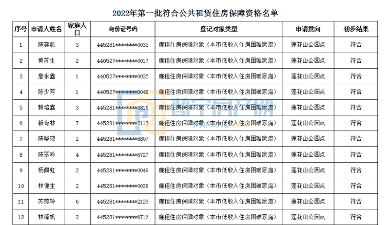 2022年普宁市第一批符合公共租赁住房保障资格名单公示