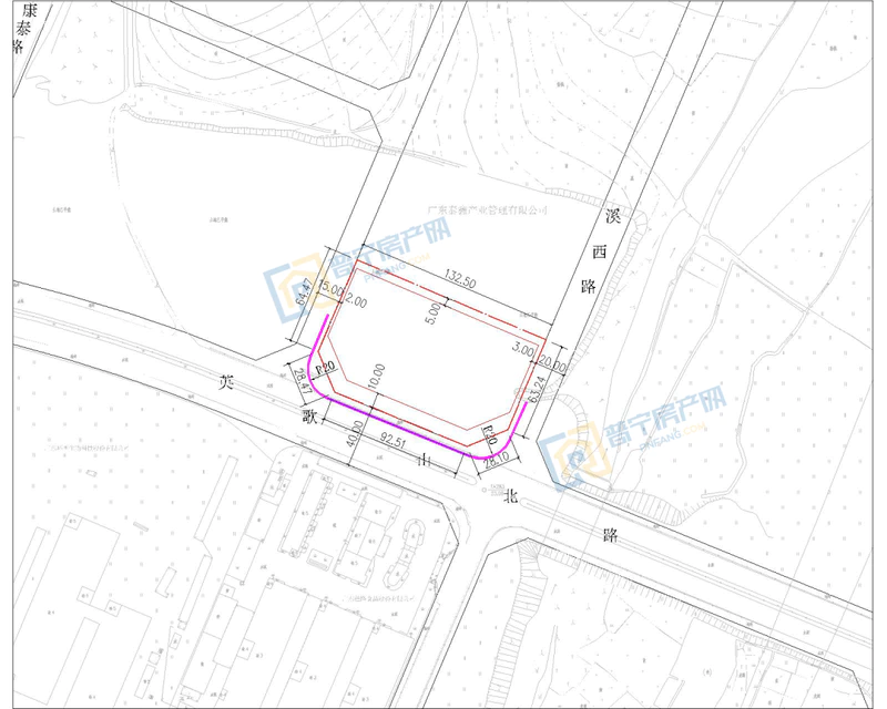 6.红点划线为用地范围线,品红线为机动车禁止开口线;