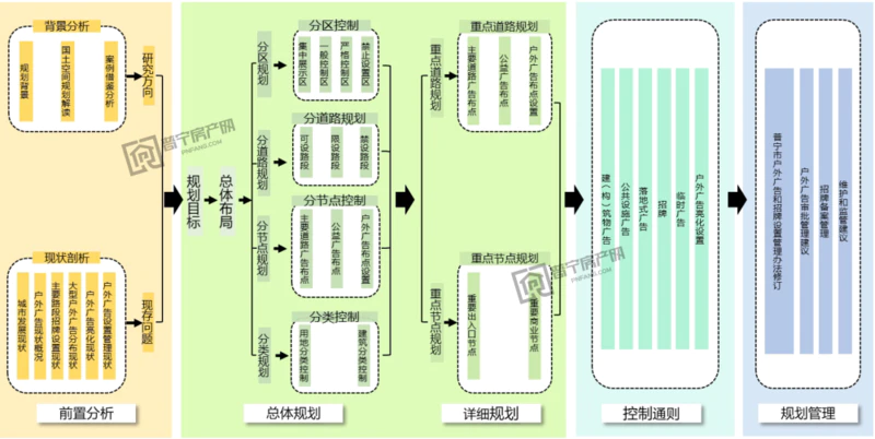 上下结合的背景研究:结合上层次要求,基于普宁市现状,同时分析借鉴国内外相关先进经验,打好基础。