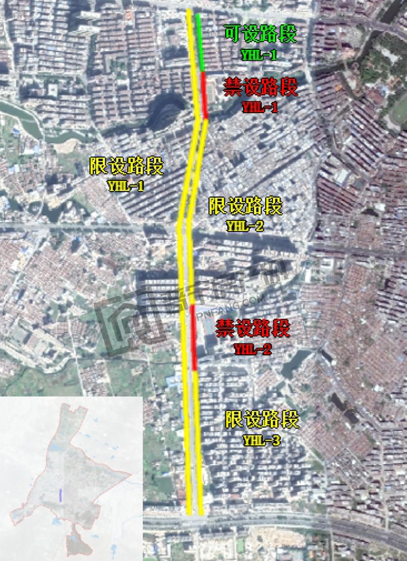练江至华美春天(小区)路段北侧、练江至玉华路北侧为限设路段;