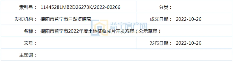 普宁市2022年度土地征收成片开发方案(公示草稿)