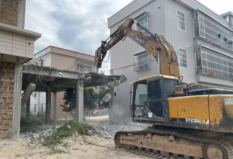 葵坑村4间违法建筑物拆除中