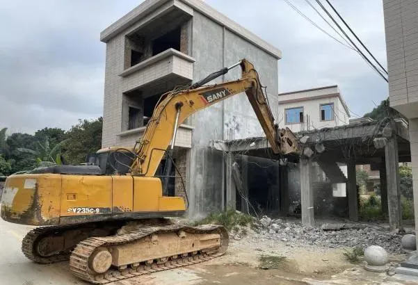山下村2间违法建筑物拆除中