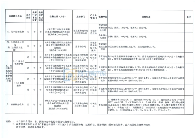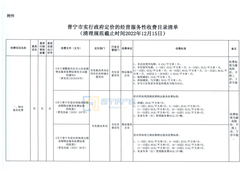 附件:普宁市实行政府定价的经营服务性收费目录清单(清理规范截止时间2022年12月15日)