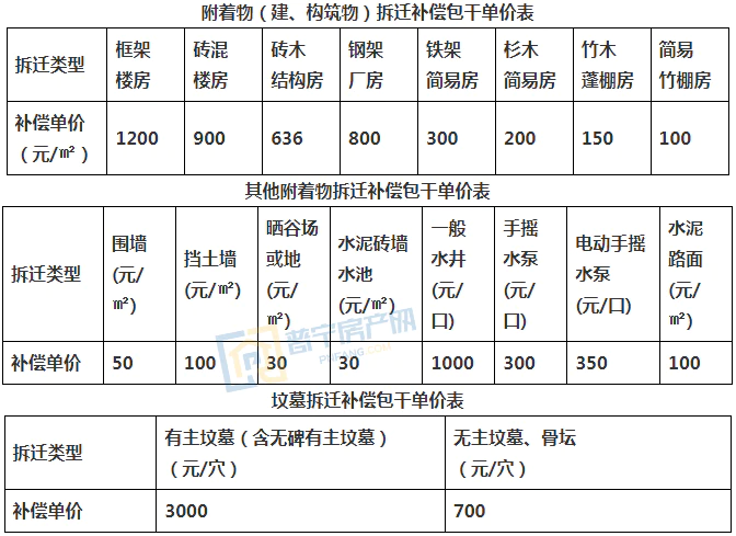 (三)附着物(建、构筑物)拆迁补偿标准: