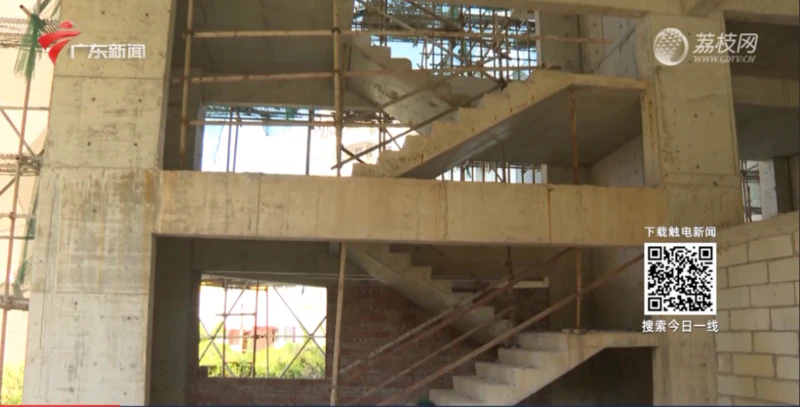葵潭镇副镇长称:2019年因为它未批先建然后被叫停,针对安全问题,在它楼房周围也有围挡,每年不定期检查加固楼盘外面的脚手架,也有责令他们把脚手架拆掉。