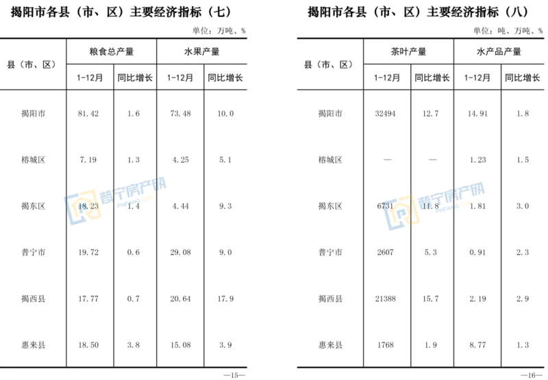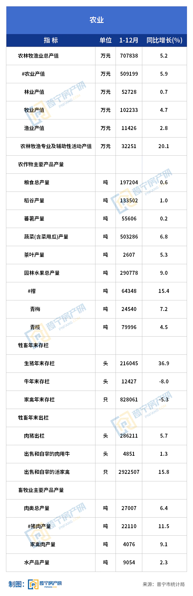 主要农产品实现增产增收,其中蔬菜产量增长6.8%;水果产量增长9.0%;猪肉产量增长6.0%;禽肉产量增长9.1%;水产品增长2.3%。