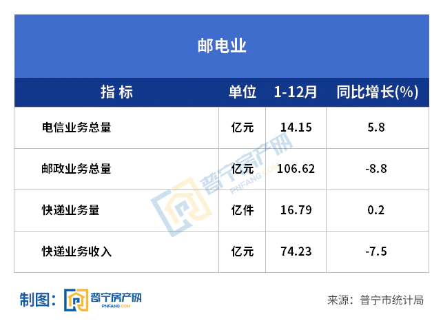 2022年,全市实现社会消费品零售总额341.83亿元,增长1.0%。全市电子商务交易额852.78亿元,增长3.2%,快递业务量累计完成16.79亿件,增长0.2%,快递业务收入累计74.23亿元,下降7.5%。
