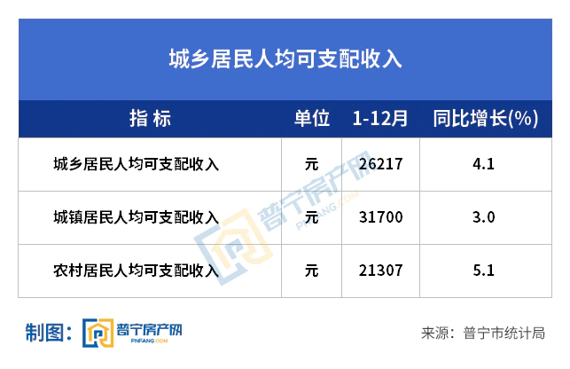 2022年,全市全体居民人均可支配收入26217,增长4.1%,其中,城镇居民人均可支配收入31700元,增长3.0%;农村居民人均可支配收入21307元,增长5.1%。