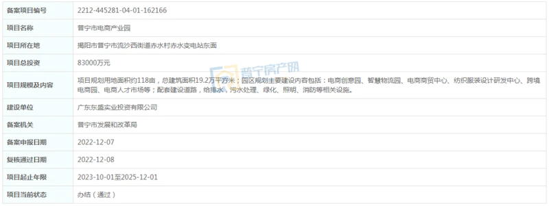 普宁市电商产业园位于普宁市流沙西街道赤水变电站东面,东靠高铁普宁站,西接揭普惠高速池尾(楼盘详情户型图相册地图)出入口,交通便捷。产业园毗邻市中心,周边酒店、金融、商住、教育、物流等服务设施齐备,功能齐全,发展电子商务、物流仓储的区位优势十分明显。该项目是由广东东盛实业投资有限公司投资的多功能电商产业综合体,规划建设占地面积约118亩,总建筑面积约19.2万平方米,总投资金额约8.3亿元。计划于2023年10月开工建设。