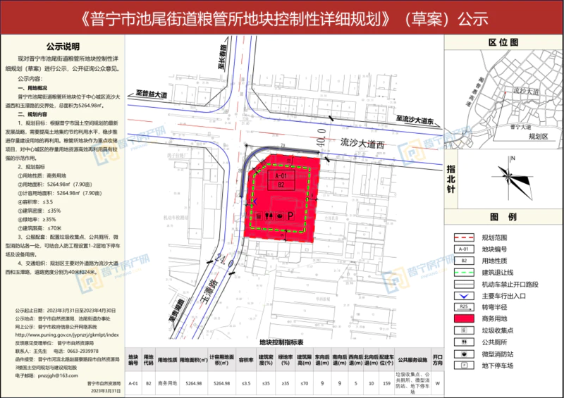 普宁市池尾街道粮管所地块控制性详细规划(草案)公示