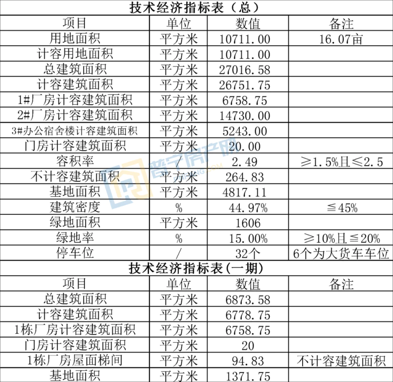 规划二栋厂房、一栋办公宿舍综合楼和一间门房,分二期进行建设,其中1#厂房和门房为第一期报建项目。