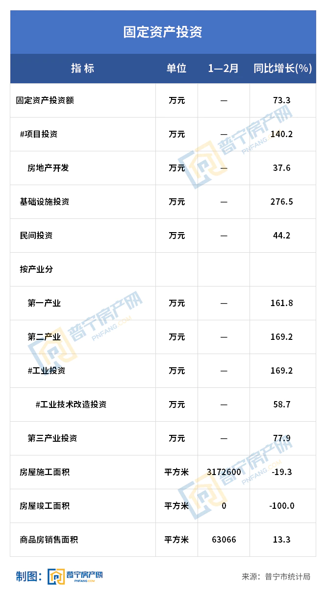 今天,普宁市统计局分别发布了2023年2月统计月报和2023年1-2月普宁经济运行简况。据了解,1-2月普宁商品房销售面积6.31万平方米,增长13.3%。