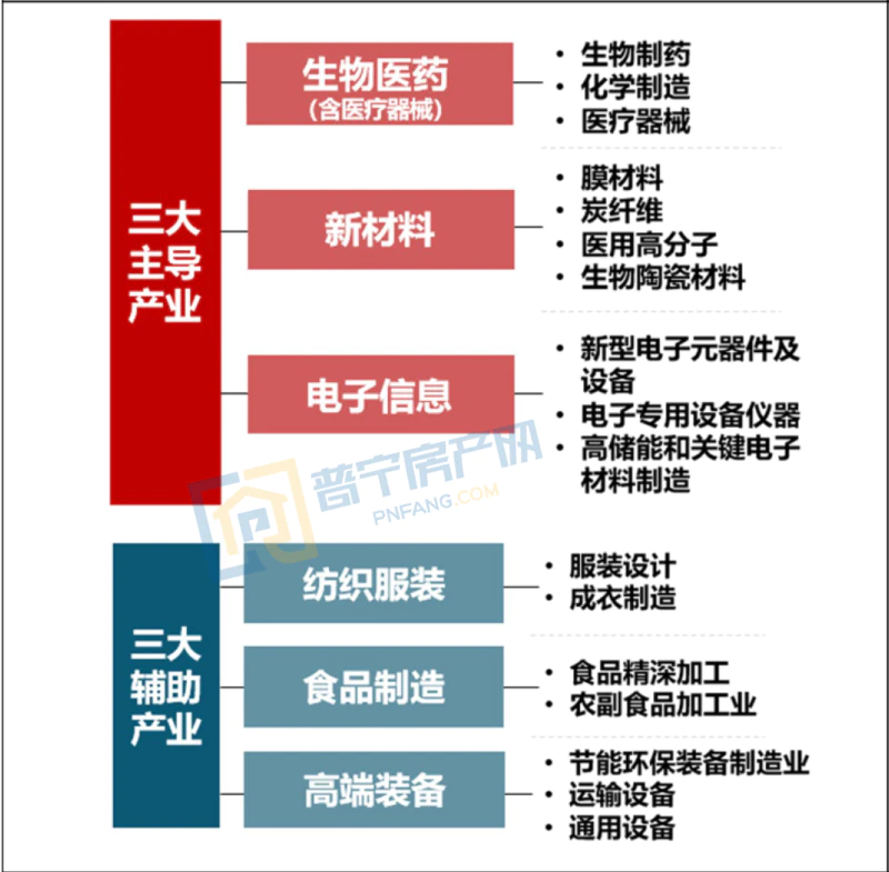 三大主导产业:大力发展生物医药(含医疗器械)、新材料、电子信息等战略新兴产业。
