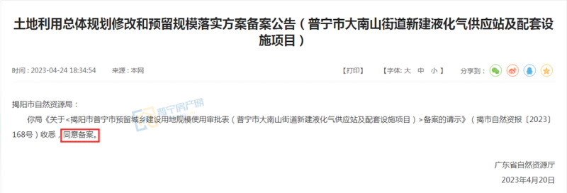 普宁市大南山街道新建液化气供应站及配套设施项目