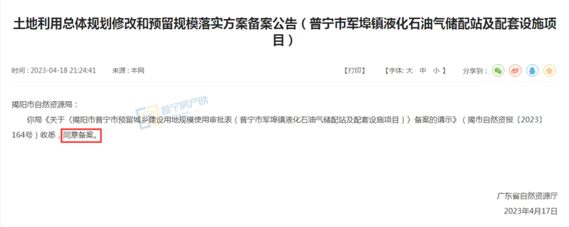 普宁市军埠镇液化石油气储配站及配套设施项目