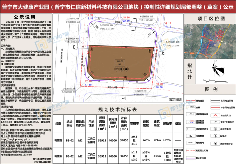 2023年3月,普宁市自然资源局启动了《普宁市大健康产业园(普宁市仁信新材料科技有限公司地块)控制性详细规划局部调整》工作,现局部调整规划草案已形成,根据《中华人民共和国城乡规划法》第二十六条的有关规定,对规划草案进行公示,广泛征求公众意见,现对相关事项公示如下: