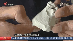 视频可见,屋内一根横着的承重梁里面,并没有灰色混凝土,取而代之的是一些乳白色物质。用棍子轻轻一敲,白色物质就脱落下来,似乎完全没有混凝土的硬度。