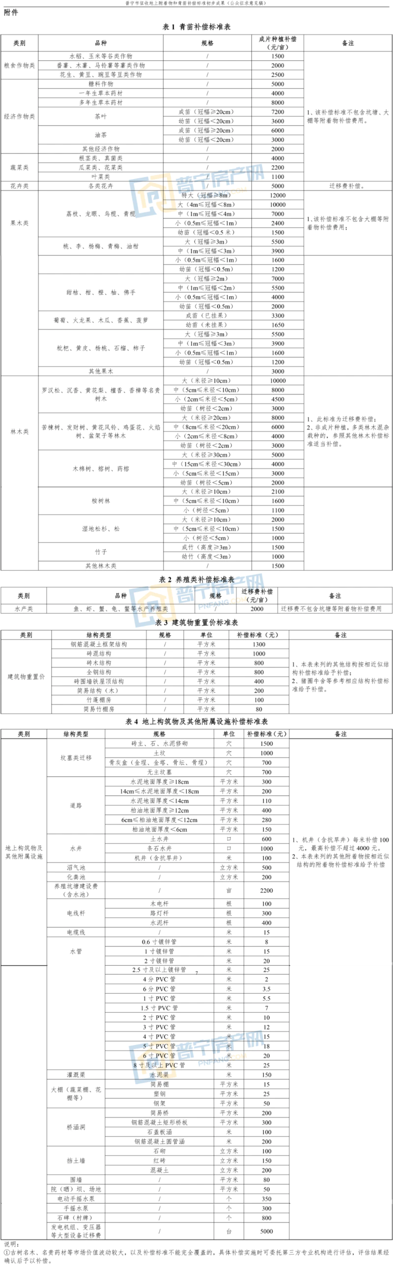 附件:普宁市征收地上附着物和青苗补偿标准初步成果(公众征求意见稿)