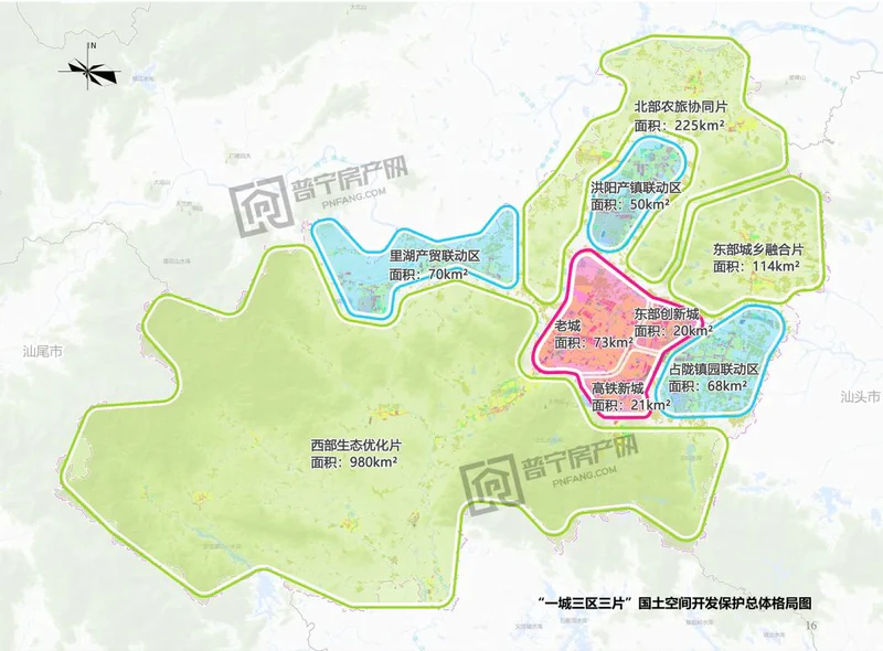 3个市级公共服务中心:普宁城区、东部创新城和北二环公共服务中心
