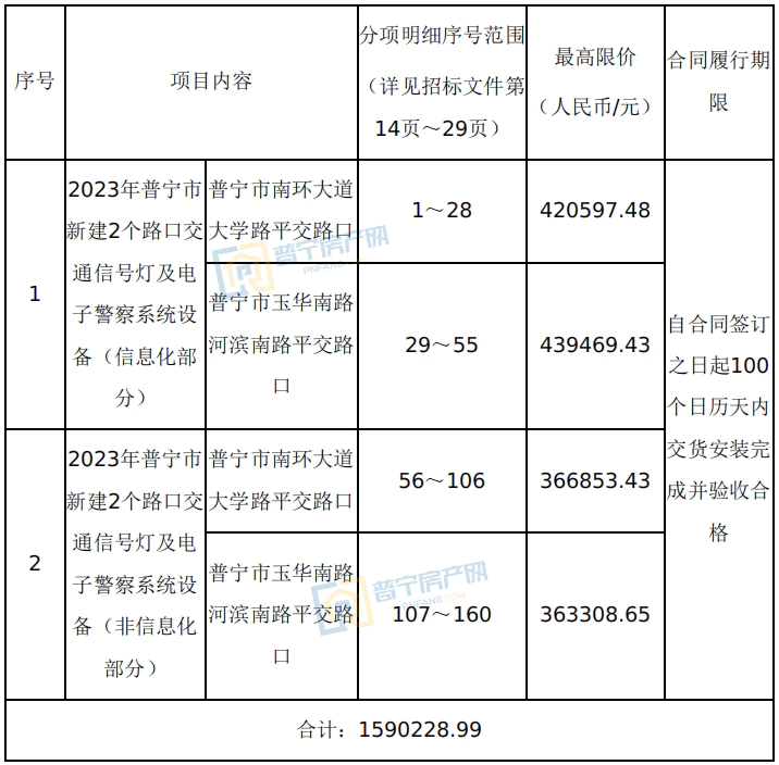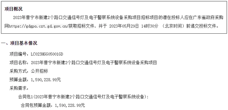 2023年普宁市新建2个路口交通信号灯及电子警察系统设备采购项目招标公告