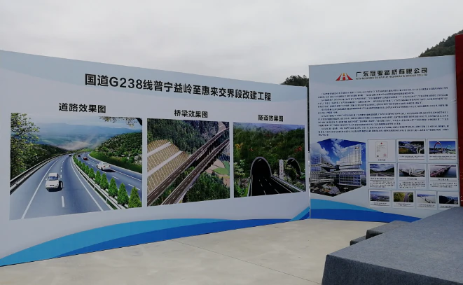 国道G238线普宁益岭至惠来交界段改建工程项目起点位于国道G238益岭村路段,路线呈南北走向,途经益岭、兴仔、风吹涵水库等,终点于船桥水库东侧普宁与惠来交界处,与国道G238线普宁交界至惠来惠城段相接,路线全长11.106公里。按一级公路技术标准进行建设,路基宽25.5米,双向四车道(部分控制性结构物双向六车道)计划总投资100977万元,计划工期900天。全线共有桥梁8座,隧道1座,平交口13处,避险车道2处,停车休息区2处。