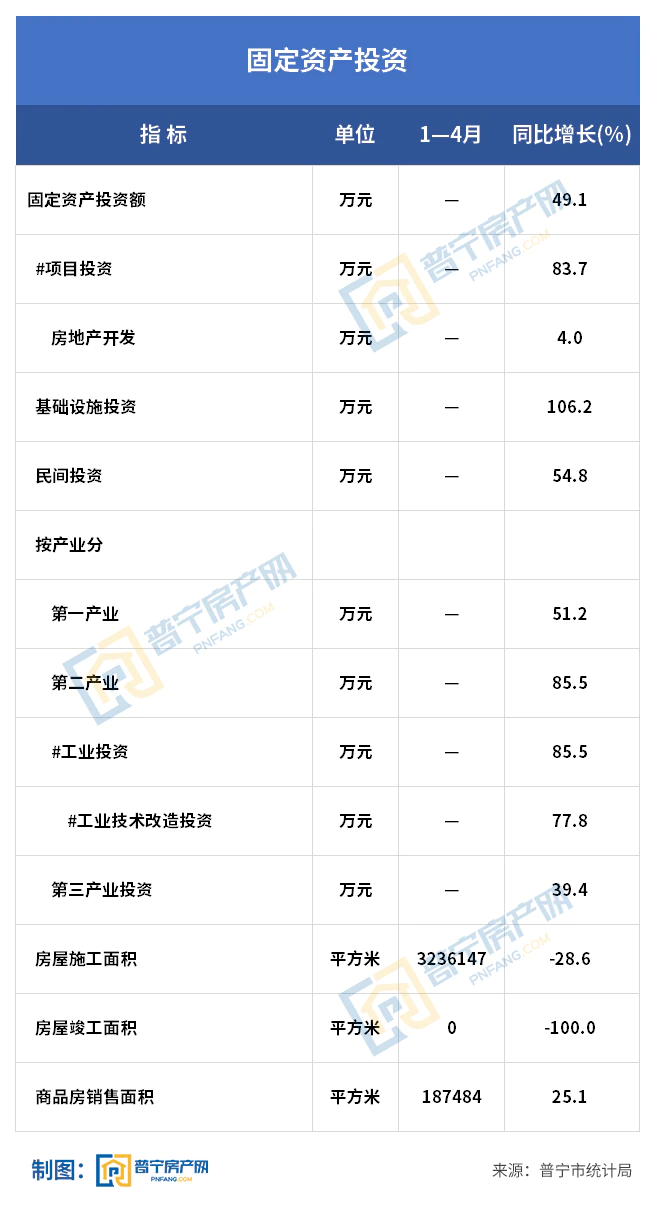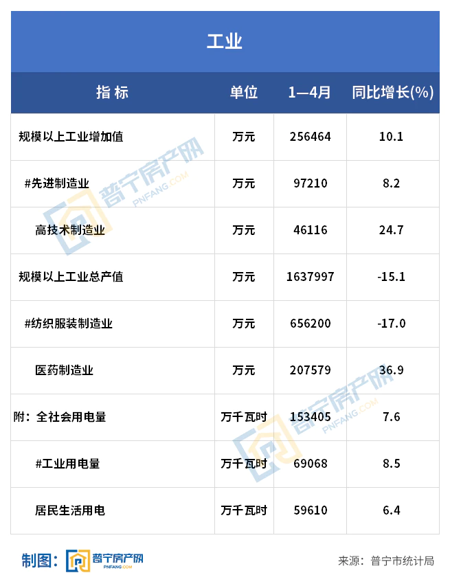 今天,普宁市统计局分别发布了2023年4月统计月报和2023年1-4月普宁经济运行简况。1-4月,全市各地各有关部门认真贯彻落实普宁市委、市政府各项工作部署,聚焦重点,抓经济、推招商、促项目,全市经济运行延续一季度恢复态势,主要经济指标整体向好。据了解,1-4月普宁商品房销售面积18.75万平方米,增长25.1%。