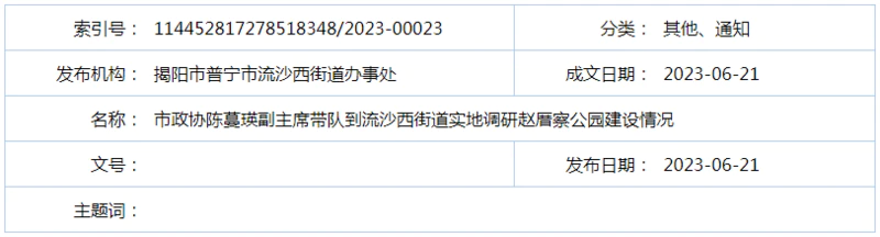 近日,市政协陈蔓瑛副主席带队到流沙西街道实地调研赵厝察公园建设情况,就“加快市区“口袋’公园规划建设,助推绿美普宁生态建设”开展专题调研活动。今天,小房君就带大家一起去现场看看赵厝寮文化广场建设最新进度。
