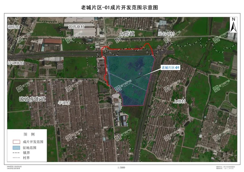 老城片区-01:片区面积17.05公顷,征地地块名称为上塘片区住宅用地,征地面积13.3276公顷,占比78.17%。
