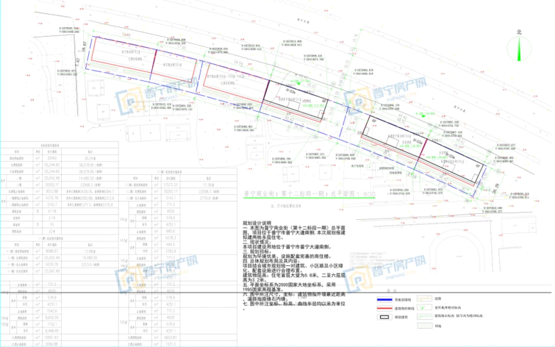一、本图为普宁商业街(第十二标段一期)总平面图,项目位于普宁市普宁大道南侧,本次规划报建拟建两栋多层住宅。二、现状情况: