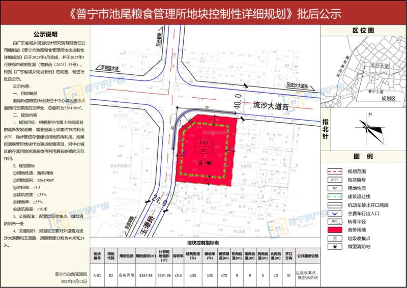 据普宁市池尾粮食管理所地块控制性详细规划显示,根据普宁市国土空间规划的最新发展战略,需要提高土地集约节约利用水平,稳步推进存量建设用地的再利用。池尾街道粮管所地块作为重点收储项目,对中心城区的存量用地资源高效再利用具有较强的示范作用。