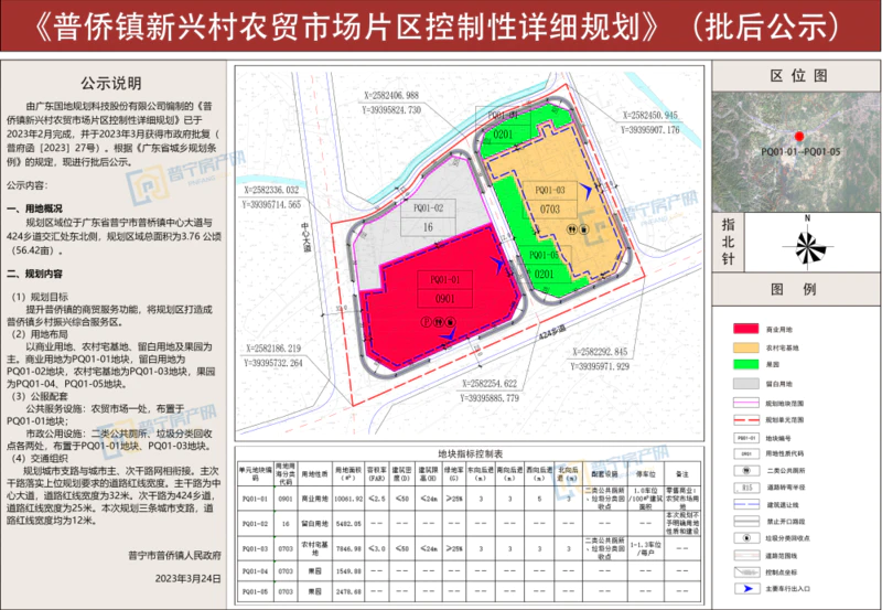 据普侨镇新兴村农贸市场片区控制性详细规划显示,规划区域总面积56.42亩,提升普侨镇的商贸服务功能,将规划区打造成普侨镇乡村振兴综合服务区。
