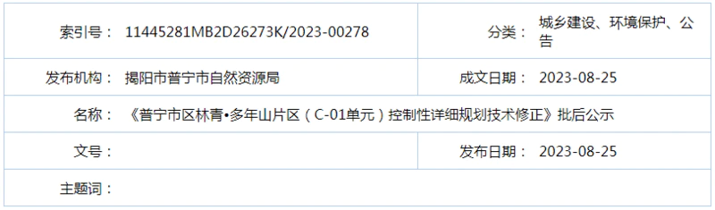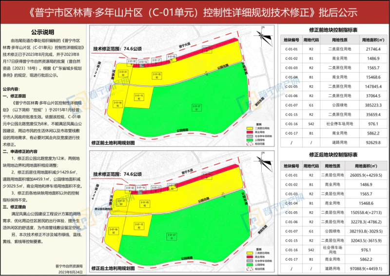 今天,普宁市自然资源局发布了《普宁市区林青•多年山片区(C-01单元)控制性详细规划技术修正》批后公示,据了解,由池尾(楼盘详情户型图相册地图)街道办事处组织编制的《普宁市区林青·多年山片区(C-01单元)控制性详细规划》技术修正已于2023年8月完成,并于2023年8月17日获得普宁市自然资源局的批复(普自然资函〔2023〕18号)。根据《广东省城乡规划条例》的规定,现进行批后公示。