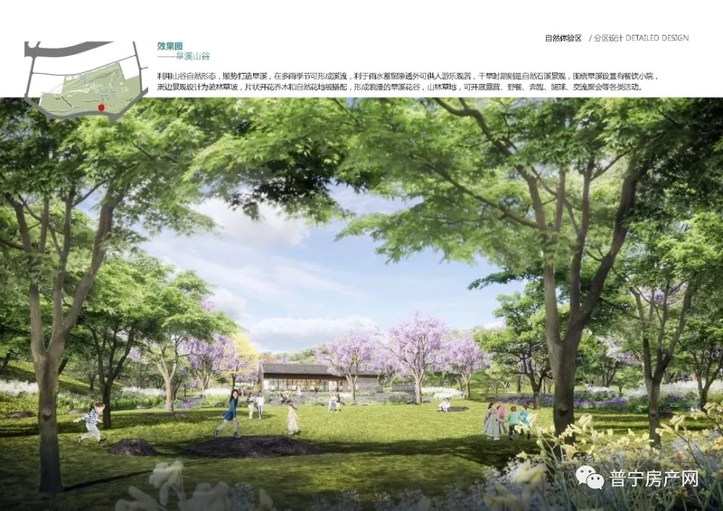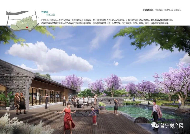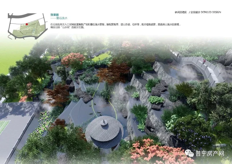 设计主题“山水间”:公园南临自然山体尖仔,北邻水主题住宅社区,西南有练江经过,山水环抱,山体地貌层叠起伏,意境悠远。融入中式文化笔墨,凸显诗画山水意境,让人沉浸于山间、水间、自然间。