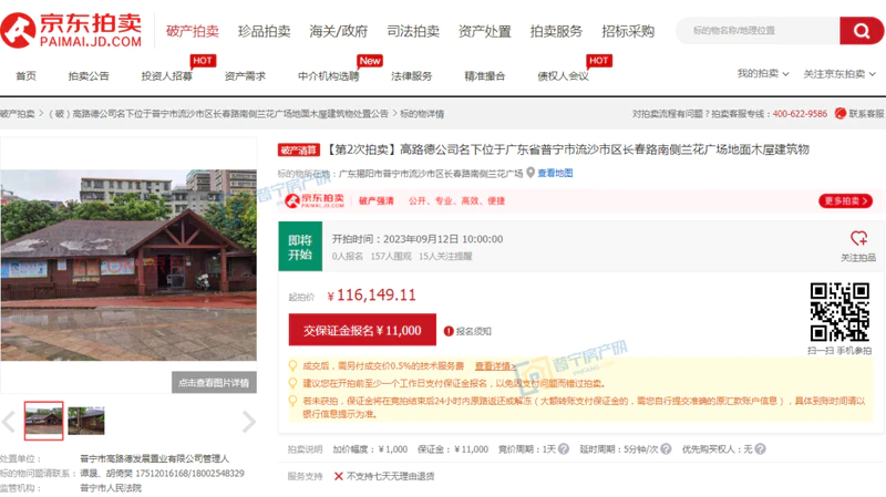 起拍价:116,149.11元,保证金:11,000.00元,增价幅度:1,000.00元及其整数倍。