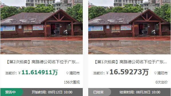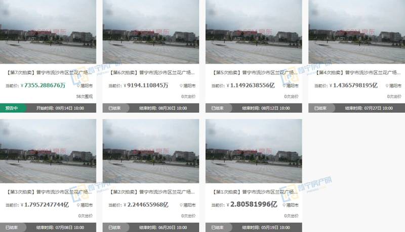第六次拍卖:8月30日,起拍价9194万。六次拍卖均无人出价而流拍。