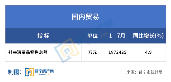 1-7月,全市实现社会消费品零售总额187.24亿元,增长4.9%,增幅比去年同期提高3.3个百分点。