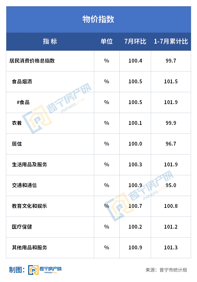 1-7月,全市居民消费价格总指数(CPI)累计下降0.3%,环比上涨0.4%。八大类商品(及服务)价格呈“5升3降”趋势。“5升”分别是:生活用品及服务类上涨1.9%,教育文化和娱乐类上涨0.8%,医疗保健类上涨1.2%,其他用品和服务类上涨1.3%,食品烟酒类上涨1.5%;“3降”分别是:衣着类下降0.1%,居住类下降3.3%,交通和通信类下降5%。