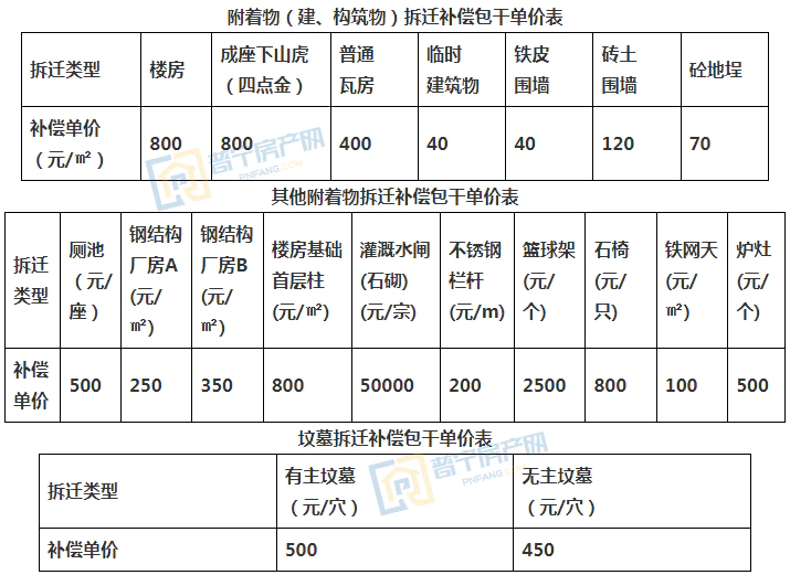 (三)附着物(建、构筑物)拆迁补偿标准: