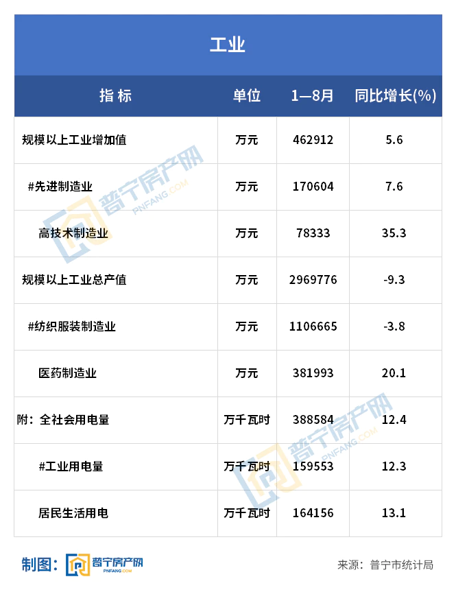 近日,普宁市统计局分别发布了2023年8月统计月报和2023年1-8月普宁经济运行简况。8月份以来,普宁市委、市政府紧紧围绕“创百强、上千亿”发展目标,聚焦重点,抓招商、上项目、拼经济、促发展,市场需求加快恢复,生产供给持续增加,全市经济持续稳定恢复运行。据了解,1-8月房屋施工面积334.31万平方米,下降27.4%;房屋竣工面积15.49万平方米,下降69.6%;商品房销售面积49.59万平方米,增长3.6%。