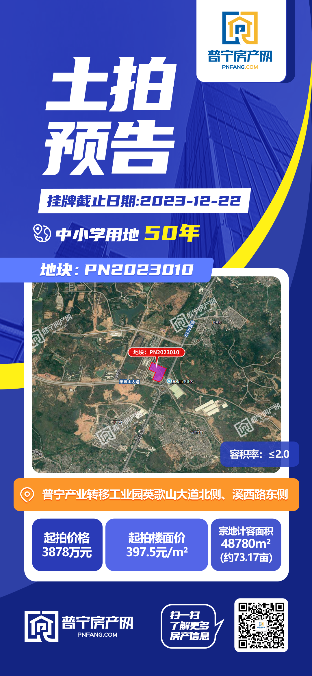 出让年限:50年PN2023010号地块所有建设内容应严格按照《普宁产业转移工业园英歌山大道北侧、溪西路东侧地块规划条件》(普自然资源规设〔2023〕21号)规定执行。