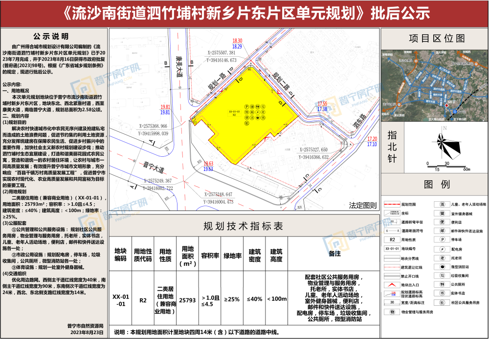 3、项目位置:普宁市流沙南街道泗竹埔村新乡片东片区;