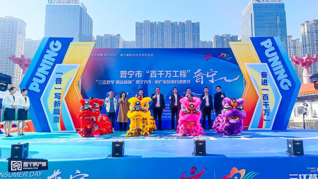 奋进“百千万”,“普”写新篇章。今天上午,由揭阳市商务局,普宁市人民政府指导,普宁市工业和信息化局主办,各有关单位共同协办的“中华战舞·普天同庆”普宁英歌文化节系列活动之 “三江荟萃 揭品扬帆”普宁汽车•房产家居惠民消费节(2023年12月30日—2024年1月1日)在普宁广场正式拉开帷幕,各有关领导嘉宾出席了活动启动仪式。