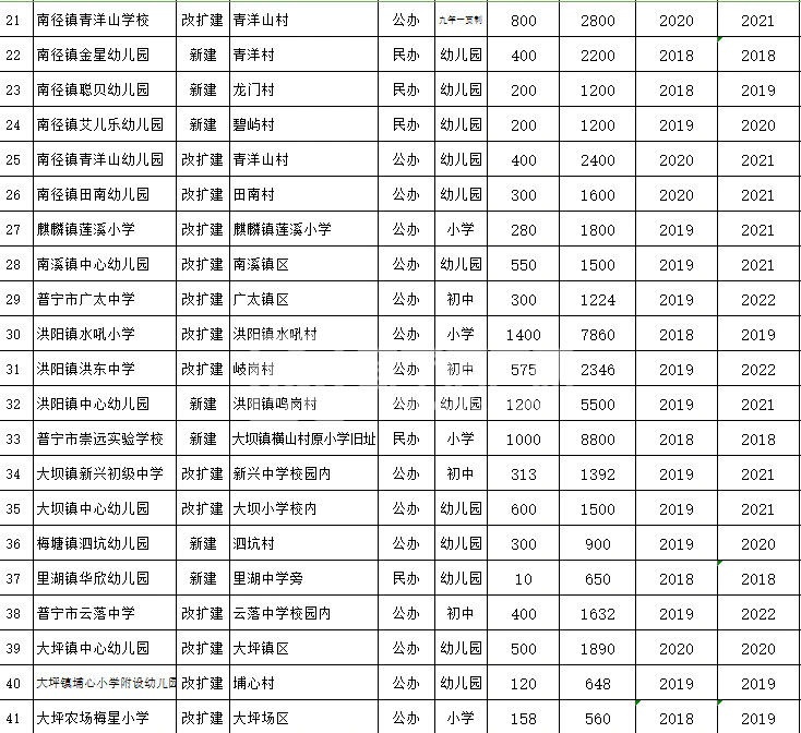 普宁市2018年-2022年中小学幼儿园建设规划方案