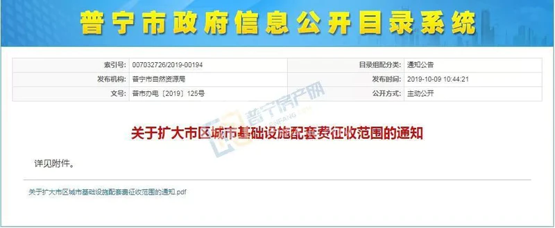 今天,小编从普宁市自然资源局了解到,为加强城市基础设施配套费的征收,加快我市市区各项基础设施建设,改善城市投资环境和生产生活环境,提高城市综合配套服务水平,经市委、市政府同意,普宁市自然资源局发布了《关于扩大市区城市基础设施配套征收范围的通知》,该通知从2019年10月1日起执行。